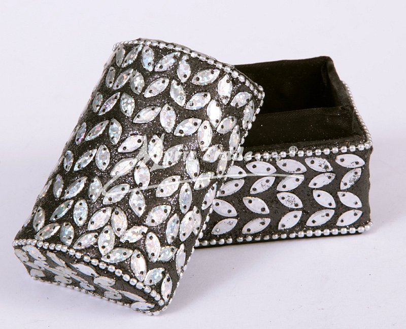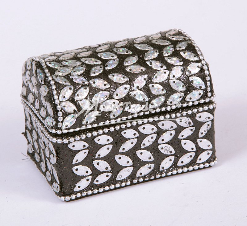 malá ozdobná šperkovnice - truhlička v černé barvě zdobená stříbrnými flitry