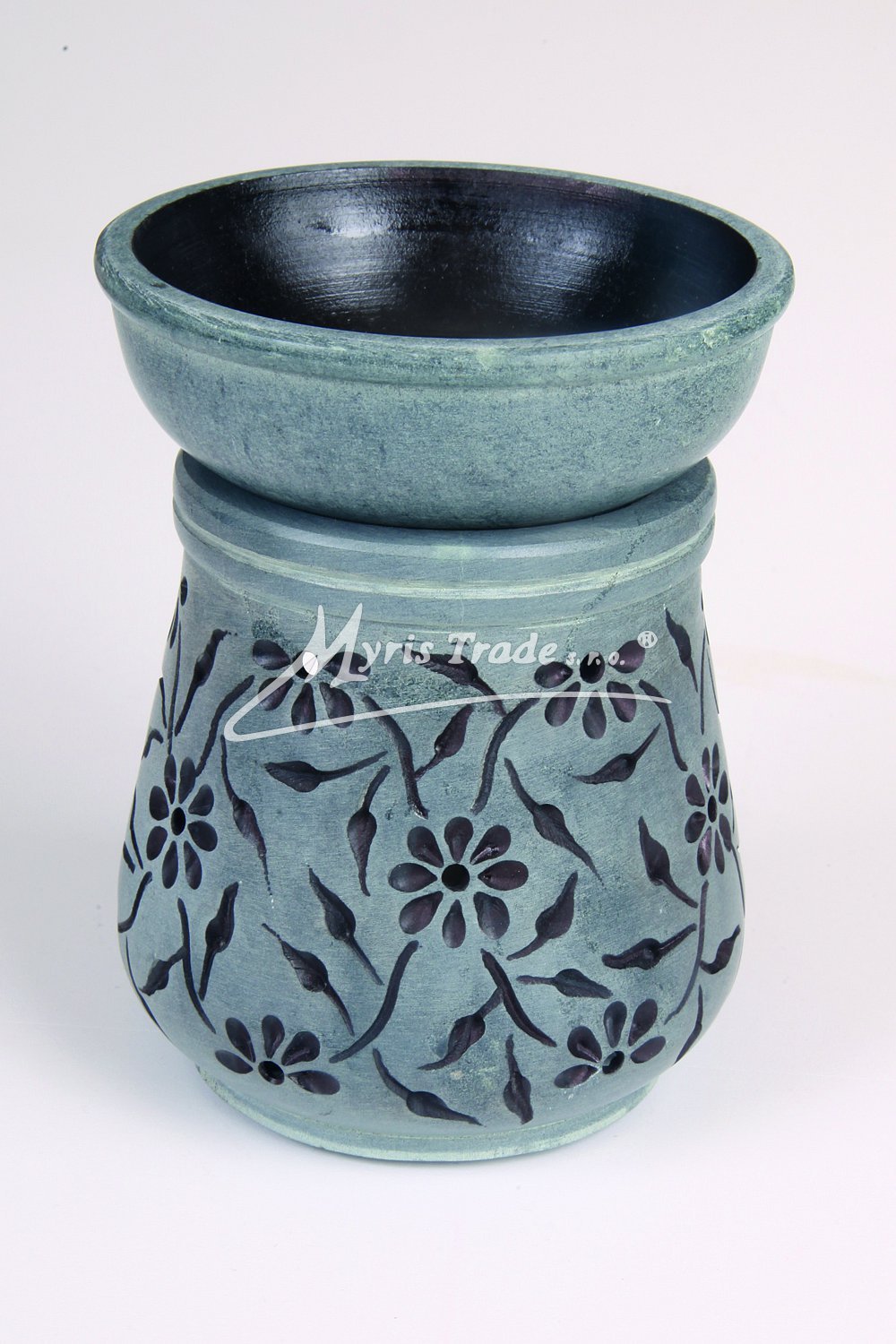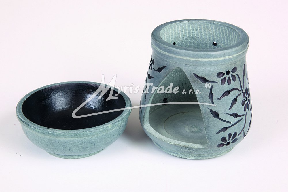 materiál: mastek miska na aromatický olej je vytvrzená U každého kusu se jedná o originální ruční práci, žádný kus proto není stejný. výška: 12,00 cm průměr: 9,00 cm
