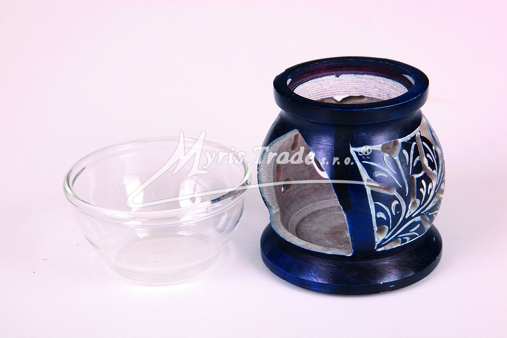 materiál: mastek miska na aromatický olej je skleněná U každého kusu se jedná o originální ruční práci, žádný kus proto není stejný. výška: 9,50 cm průměr: 6,00 cm