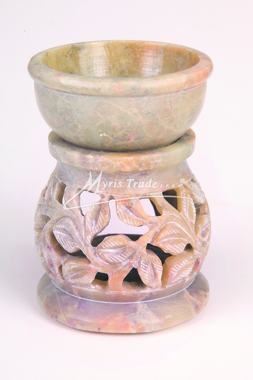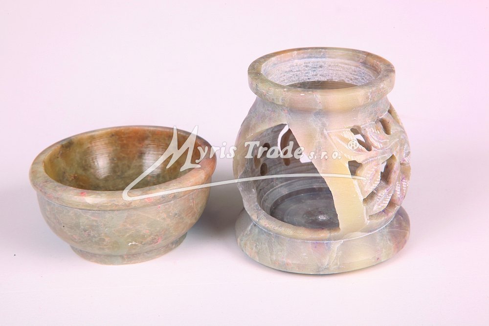 materiál: mastek miska na aromatický olej je vytvrzená U každého kusu se jedná o originální ruční práci, žádný kus proto není stejný. výška: 9,00 cm průměr: 6,00 cm