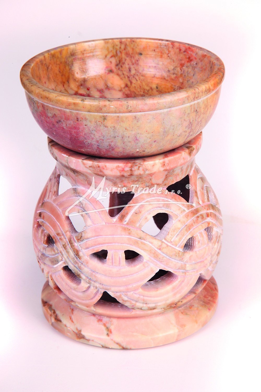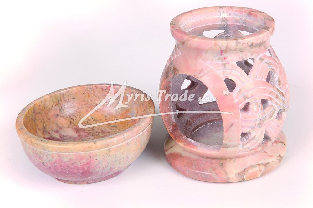 materiál: mastek miska na aromatický olej je vytvrzená U každého kusu se jedná o originální ruční práci, žádný kus proto není stejný. výška: 12,00 cm průměr: 9,00 cm
