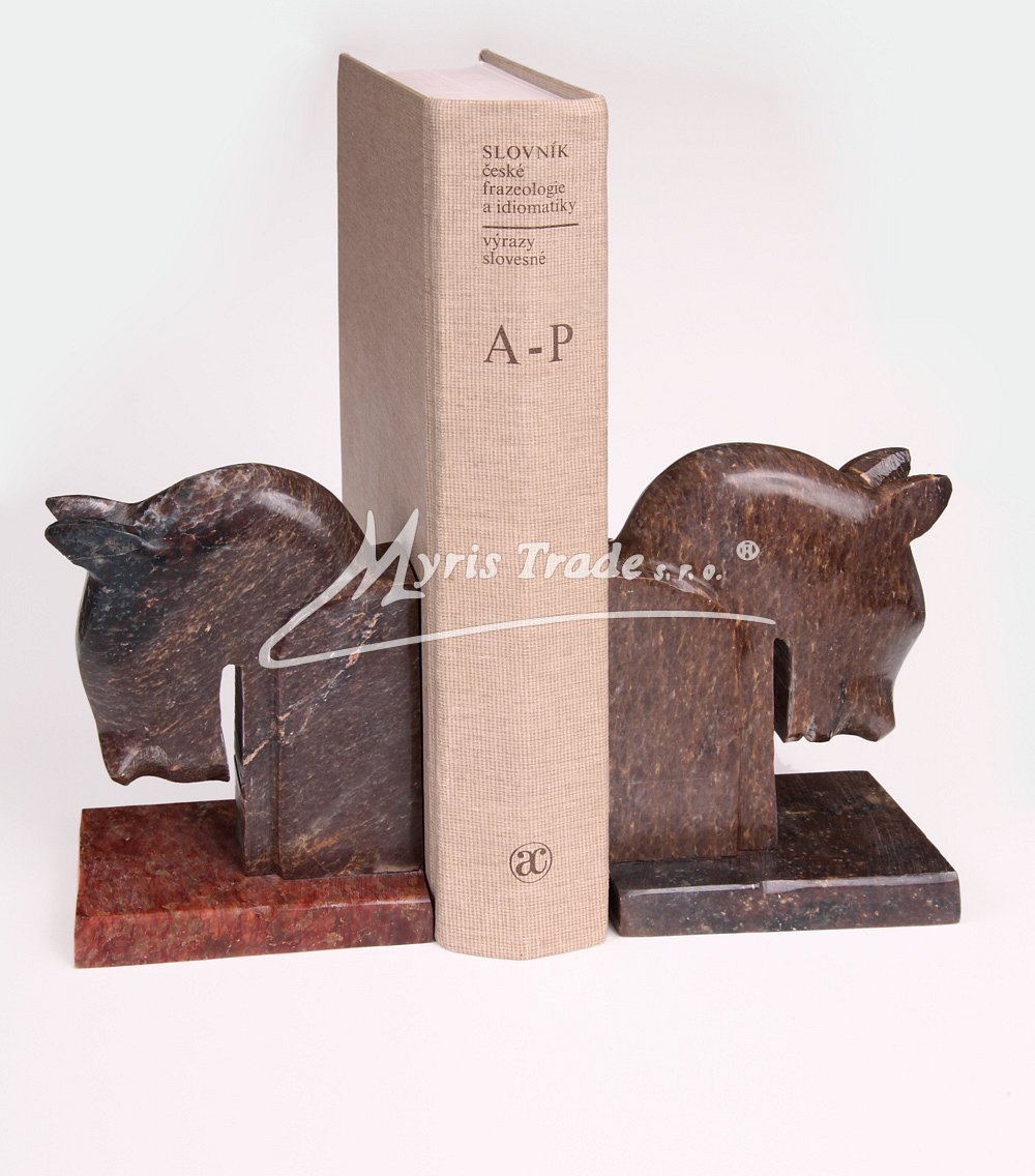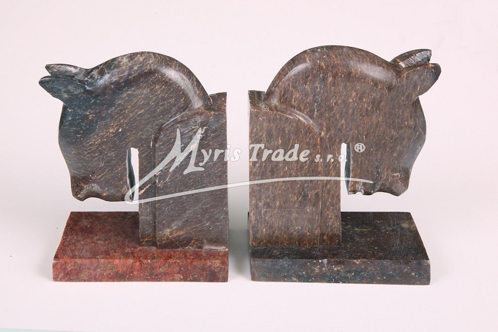 2 kusy ozdobných zarážek na knihy z leštěného mastku, v podobě hlavy koně ve stylu Art-Deco.