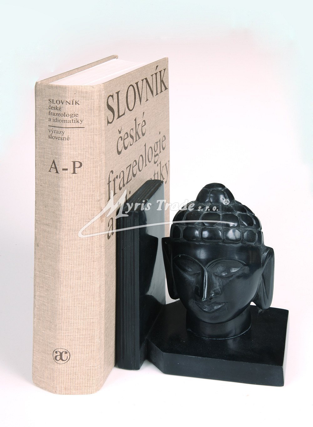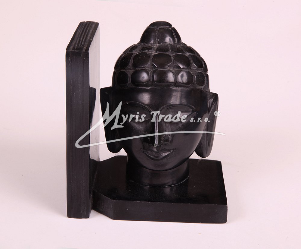 Jednostranná zarážka na knihy z černého mastku s hlavou Buddhy