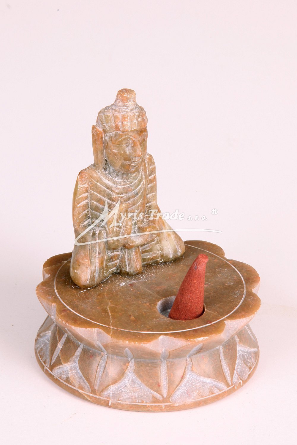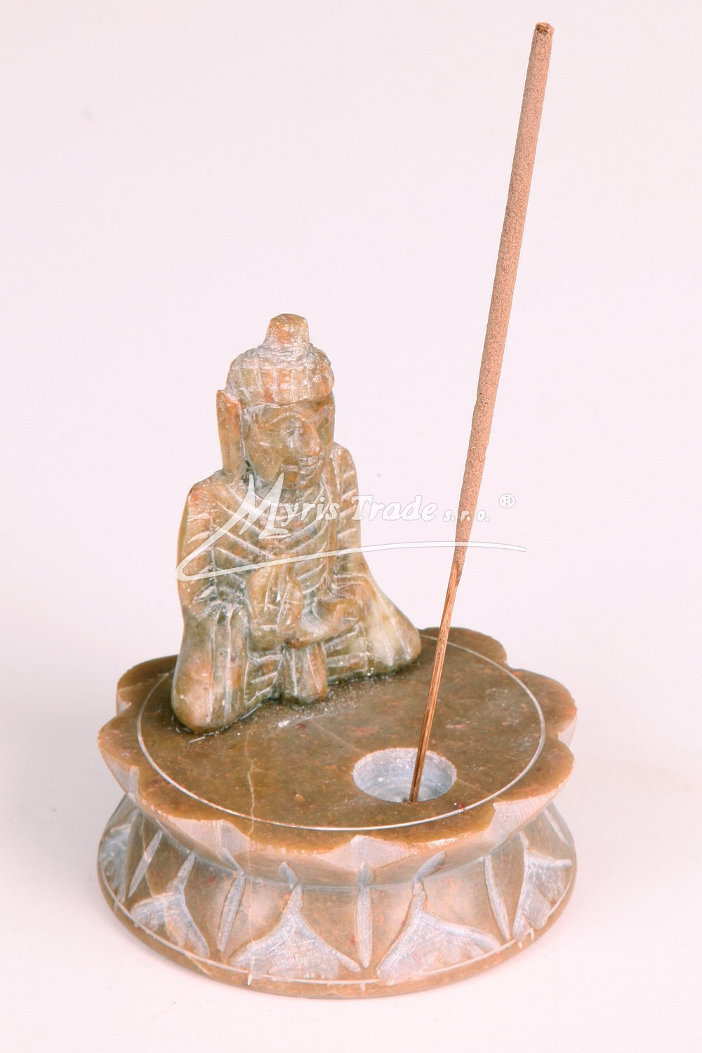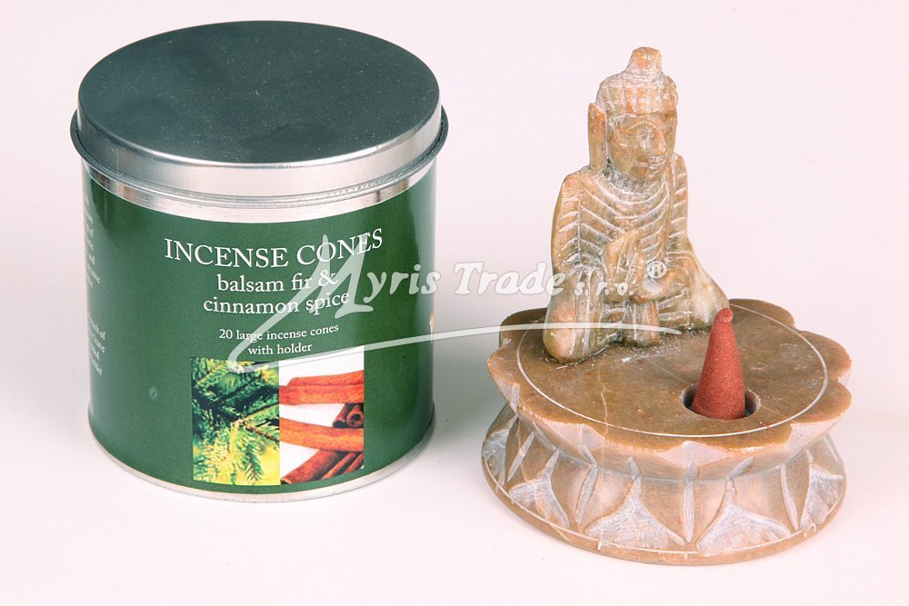 Stojánek na vánoční františky nebo vonné tyčinkyje vyřezávaný z kamene (mastku)a leštěný. Je zdobený figurkou Buddhy.
