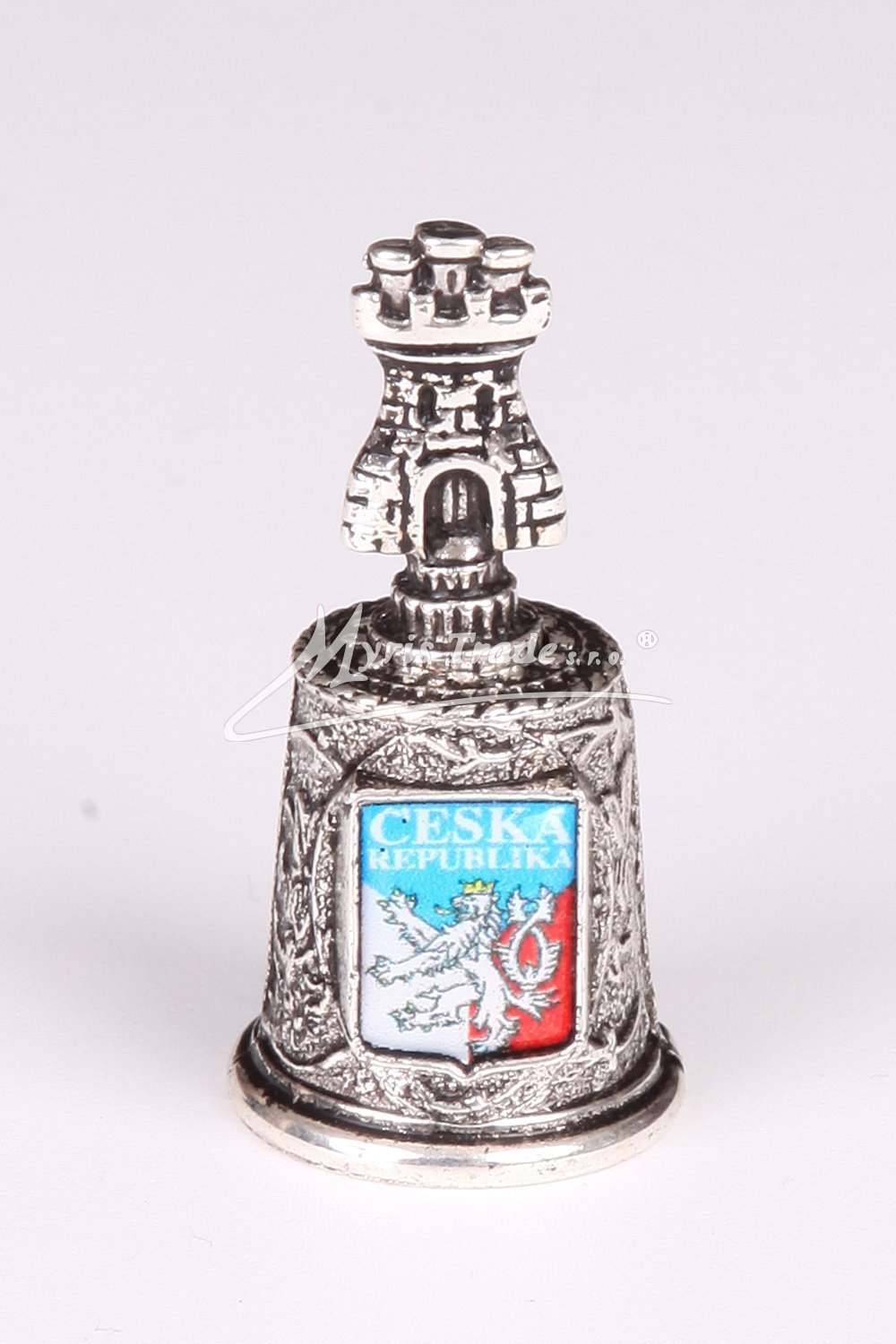náprstek s ozdobou hradní věže a s motivem České republiky - postříbřený
