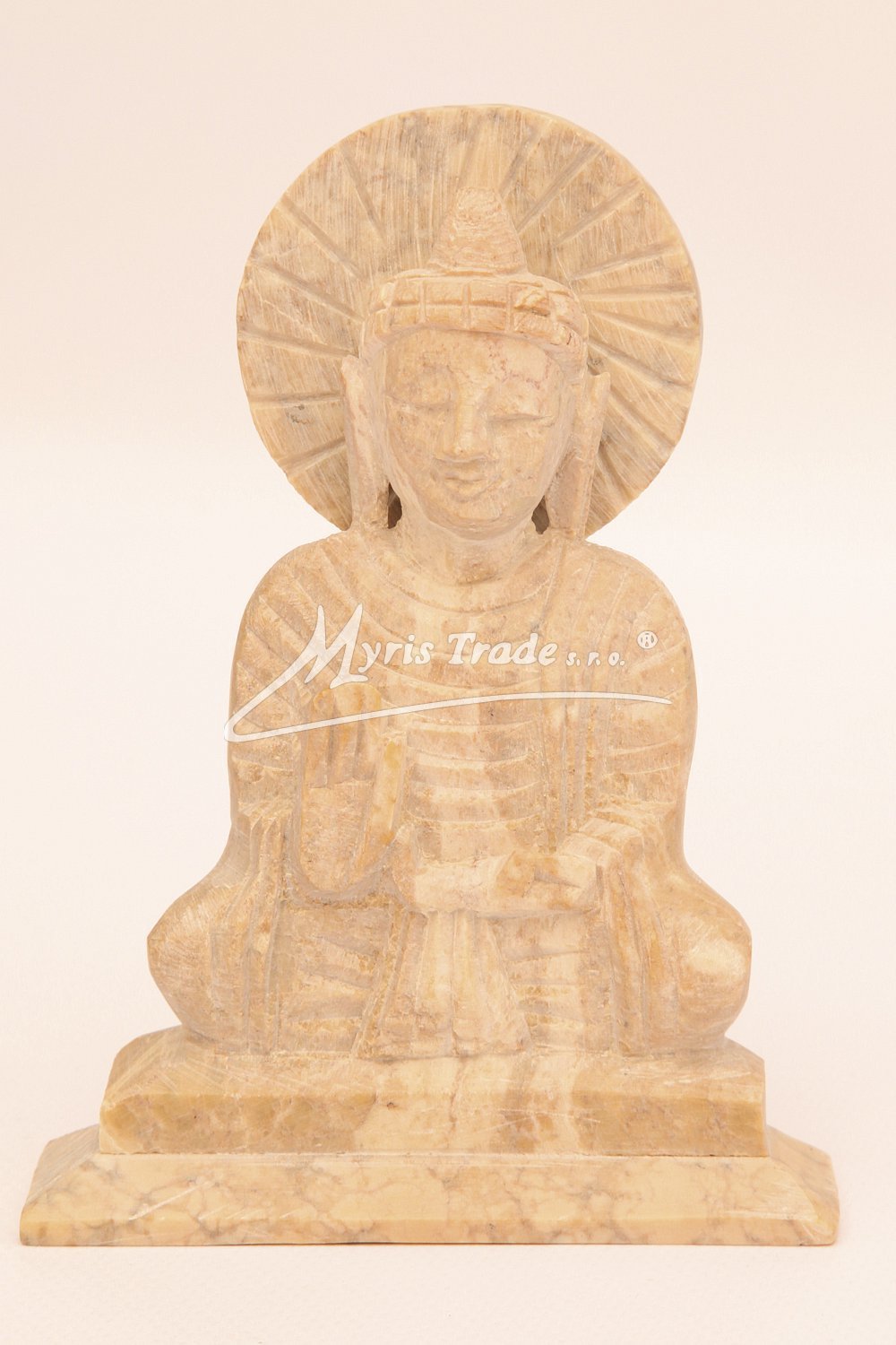 ručně vyřezávaná soška sedícího Buddhy z mastku v přírodní barvě