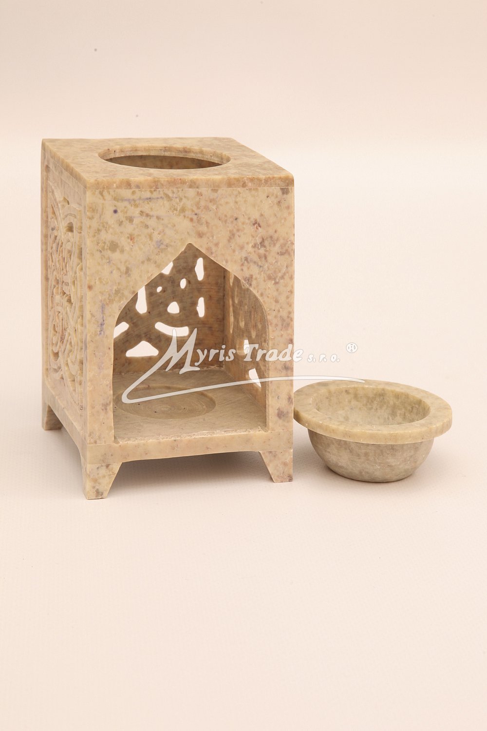 materiál: mastek miska na aromatický olej je vytvrzená U každého kusu se jedná o originální ruční práci, žádný kus proto není stejný. výška: 11,00 cm velikost: 8,00 x 8,00 cm