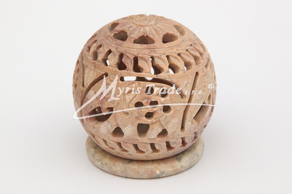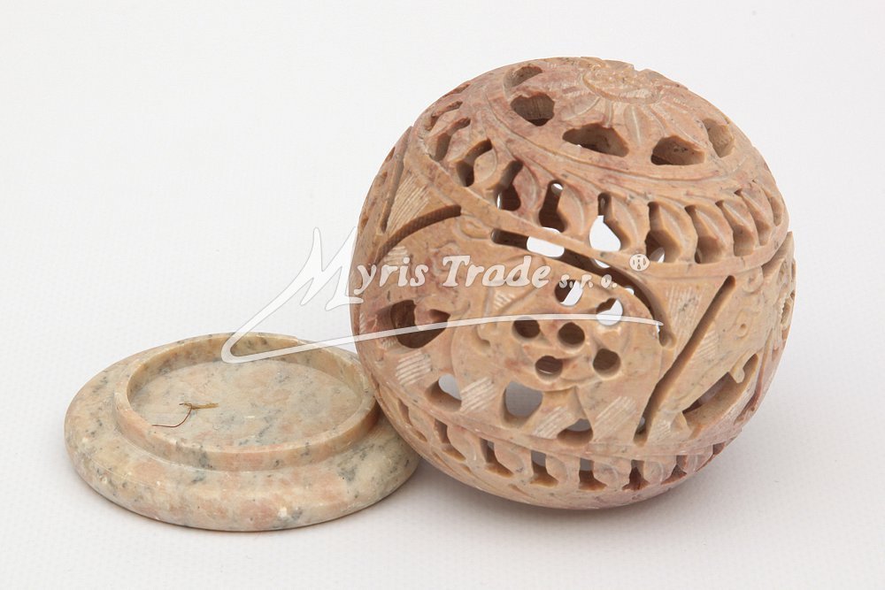 bohatě vyřezávaný svícen na čajovou svíčku s motivem slona je ručně vyroben z mastku, jednoho z nejměkčích kamenů