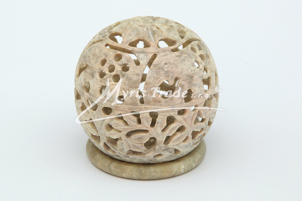 bohatě vyřezávaný svícen na čajovou svíčku s motivem slona je ručně vyroben z mastku, jednoho z nejměkčích kamenů