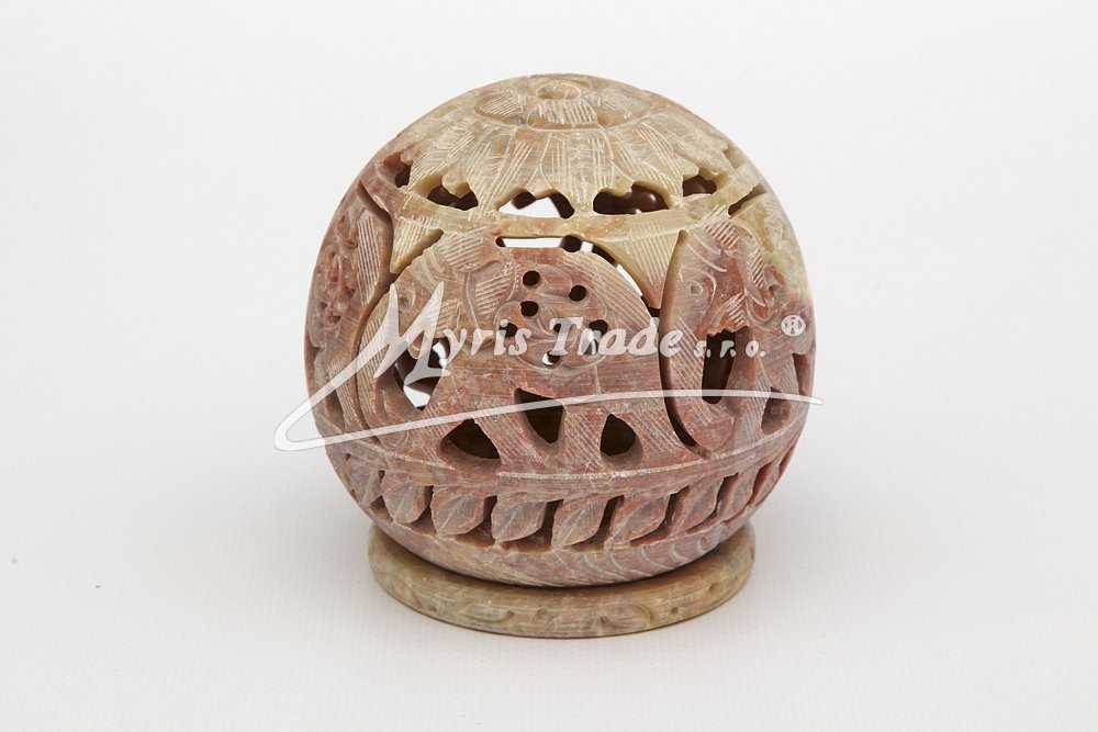 bohatě vyřezávaný svícen na čajovou svíčku s motivem slona je ručně vyroben z mastku, jednoho z nejměkčích kamenů