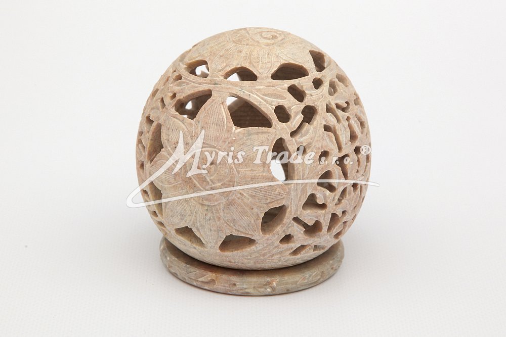 bohatě vyřezávaný svícen na čajovou svíčku s motivem květin je ručně vyroben z mastku, jednoho z nejměkčích kamenů