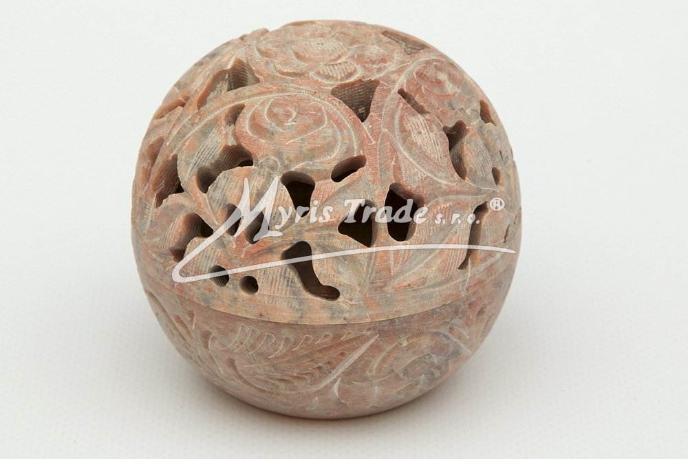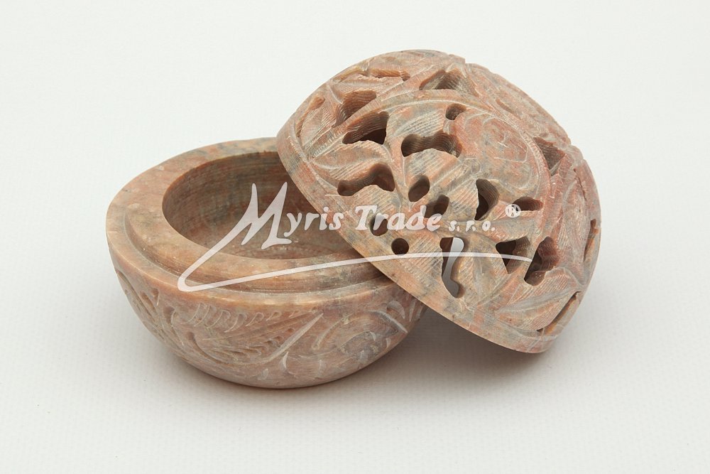 bohatě vyřezávaný svícen na čajovou svíčku je ručně vyroben z mastku, jednoho z nejměkčích kamenů