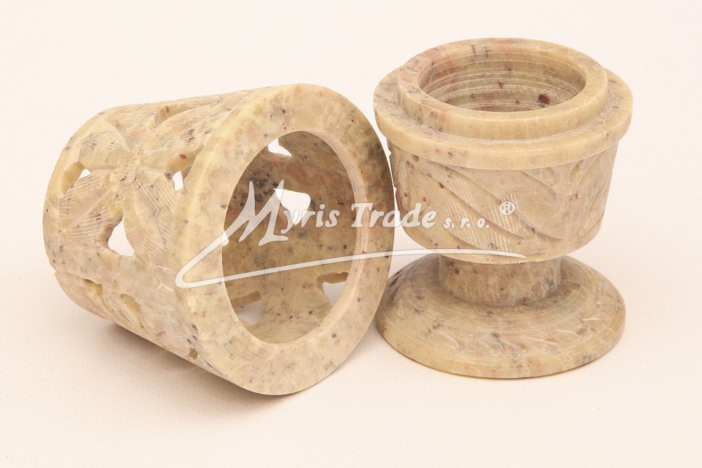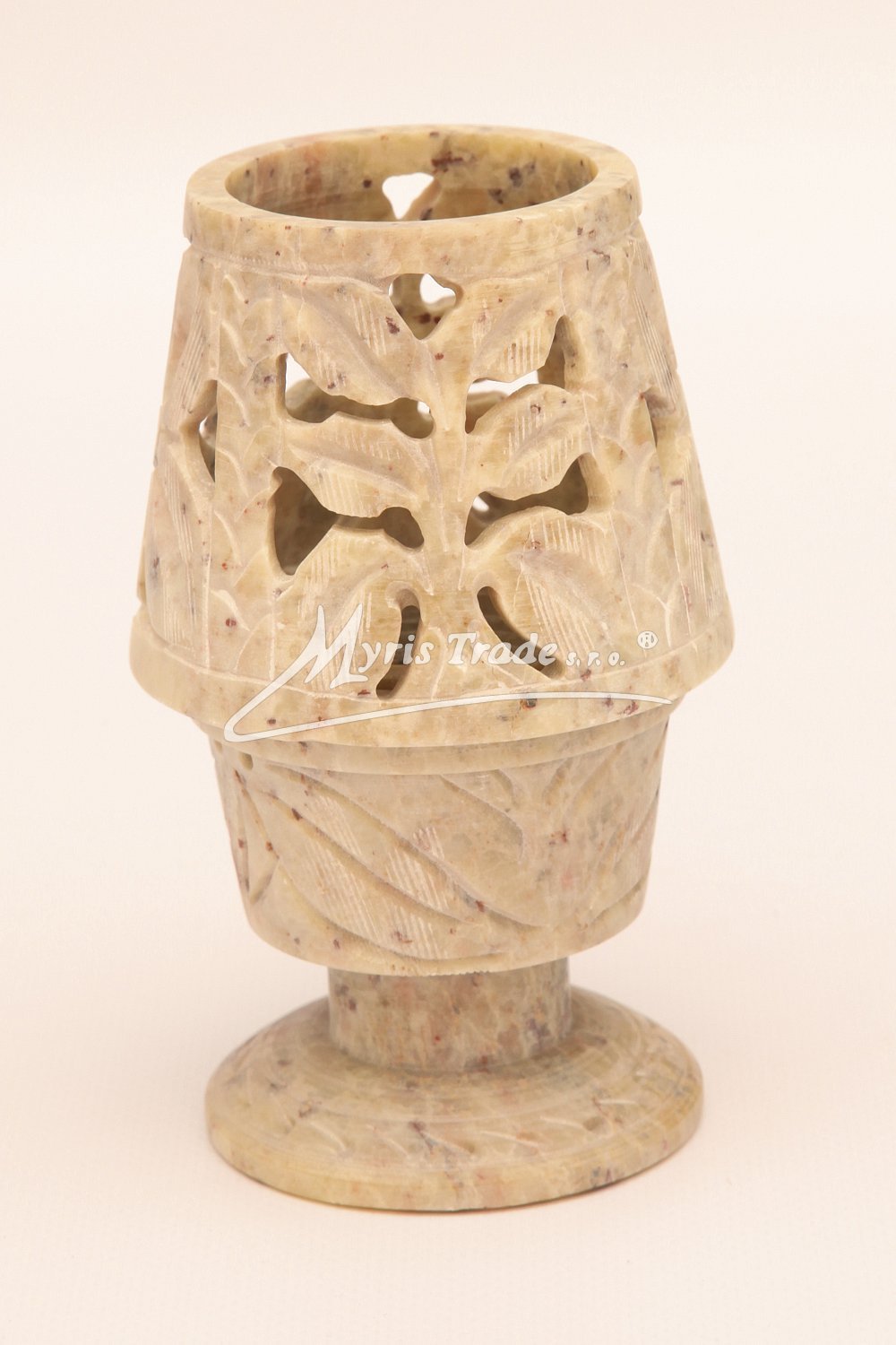 bohatě vyřezávaný svícen - lampička s motivy květin, na čajovou svíčku nebo vonné františky, je ručně vyroben z přírodního mastku