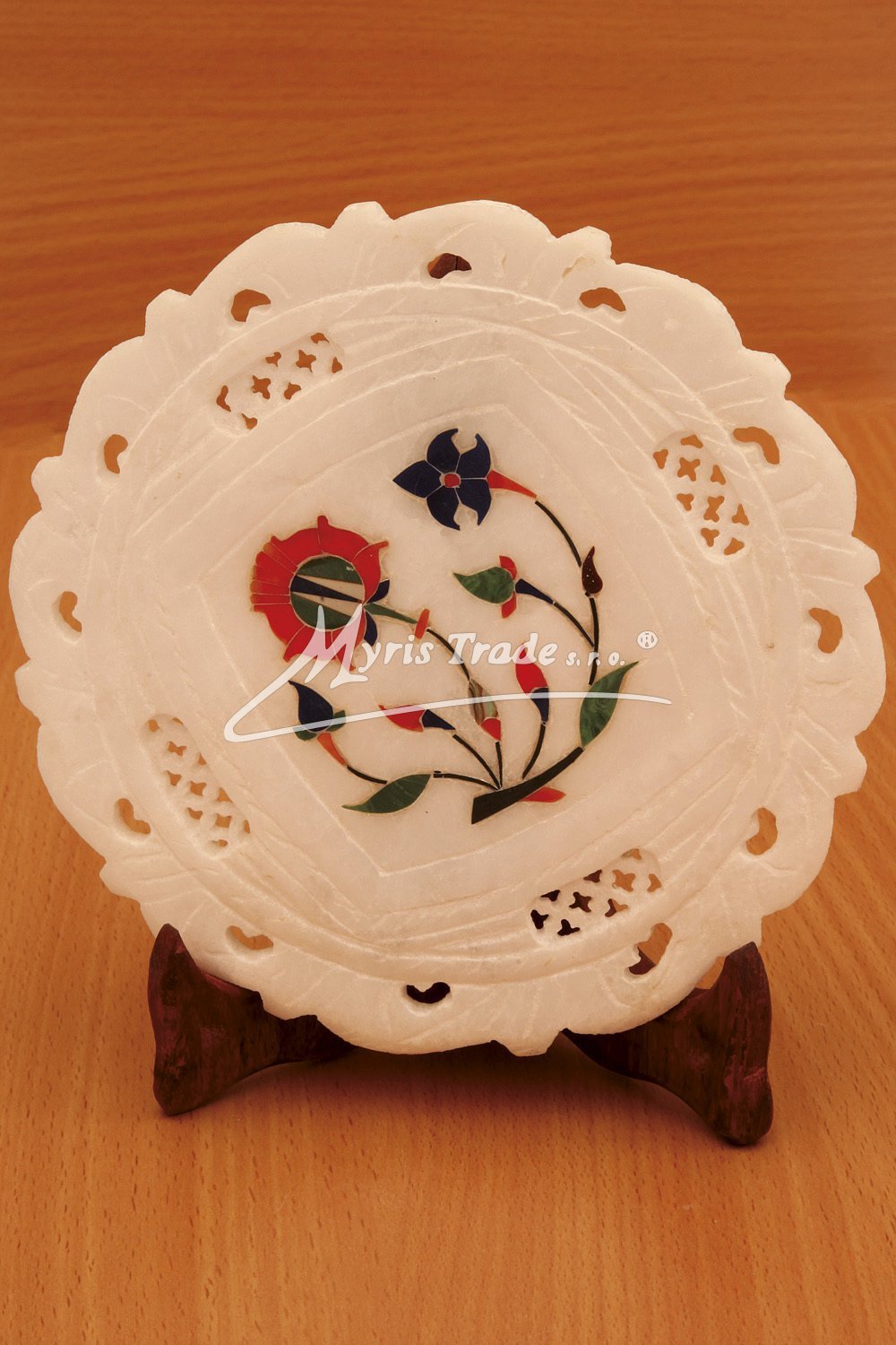 Dekorační mramorový talířek vykládaný polodrahokami se stojánkem
