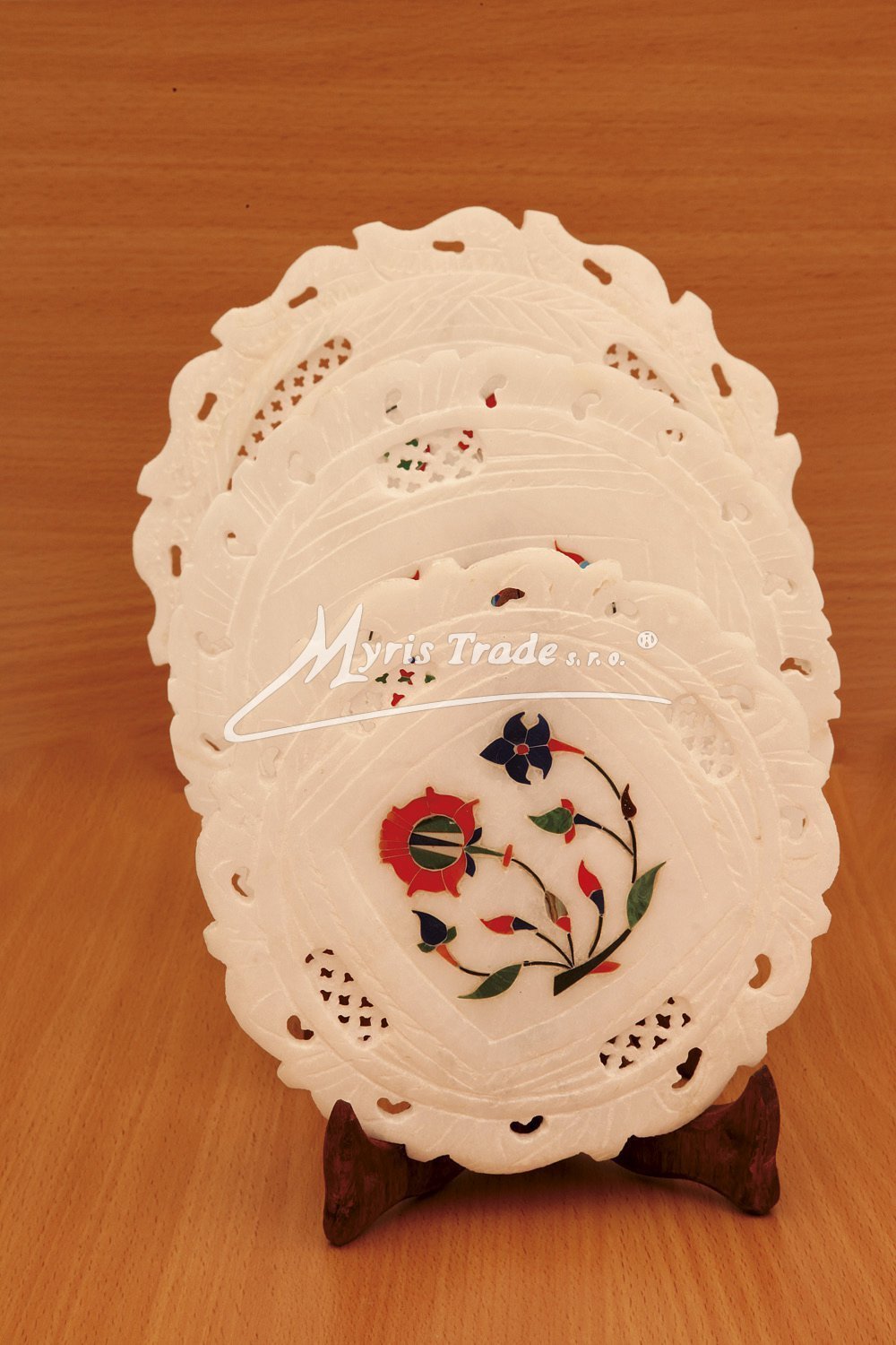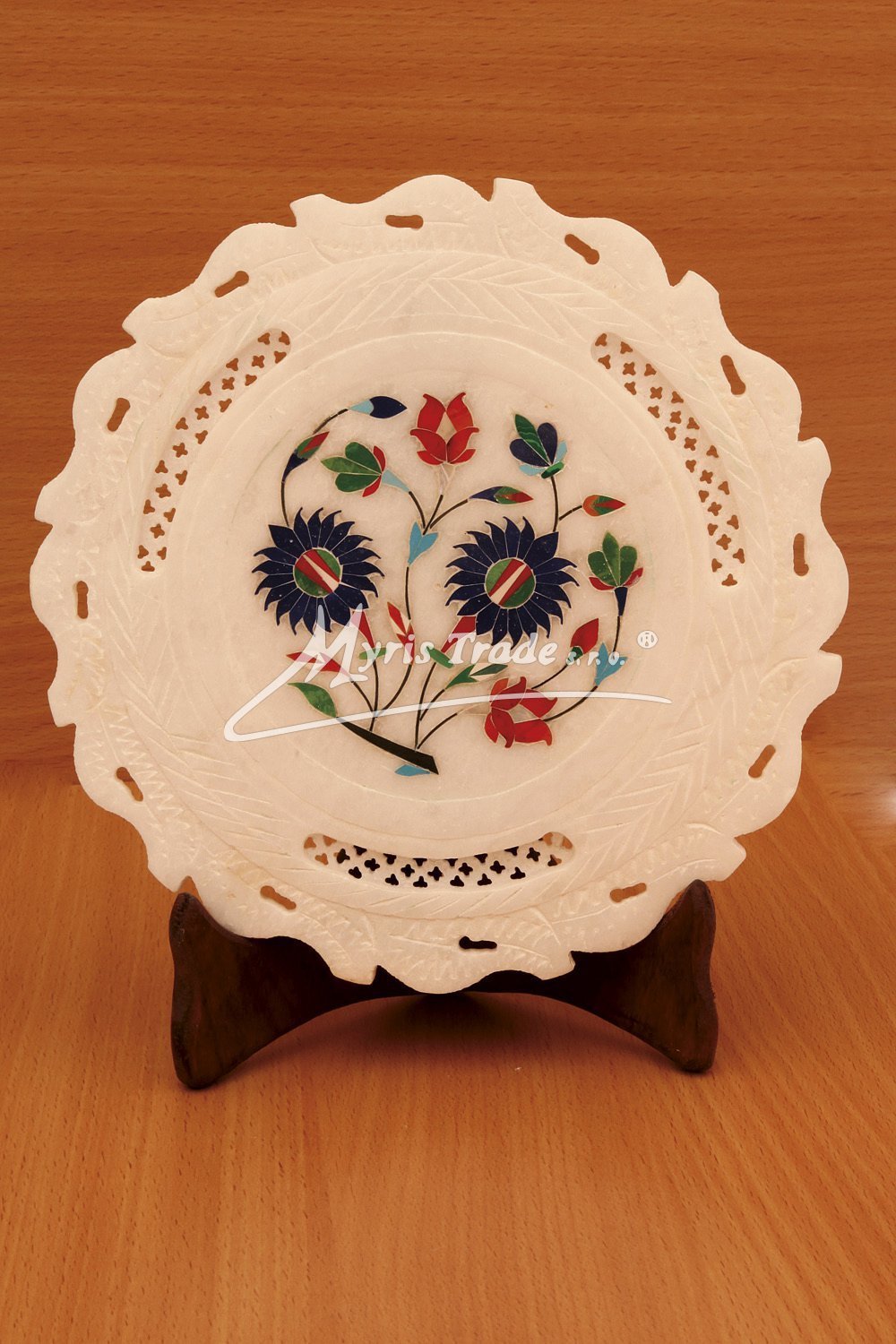 Dekorační mramorový talířek vykládaný polodrahokami se stojánkem