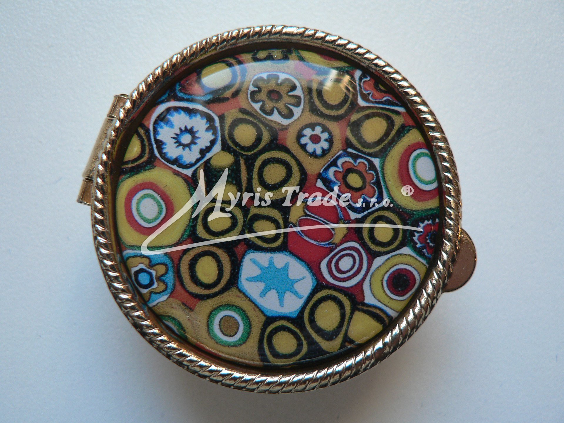 klasická kulatá lékovka je vyrobena z kovu zlaté barvy s porcelánovým víčkem s motivy, které vycházejí ze světoznámých tradičních vzorů výrobců muránského skla z Benátek.