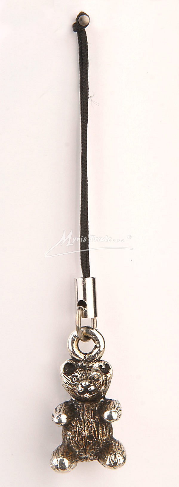 Přívěsek k mobilu ze stříbrného kovu s figurkou medvídka. Přívěsky jsou baleny jednotlivě v idelitovém sáčku s možností zavěšení.