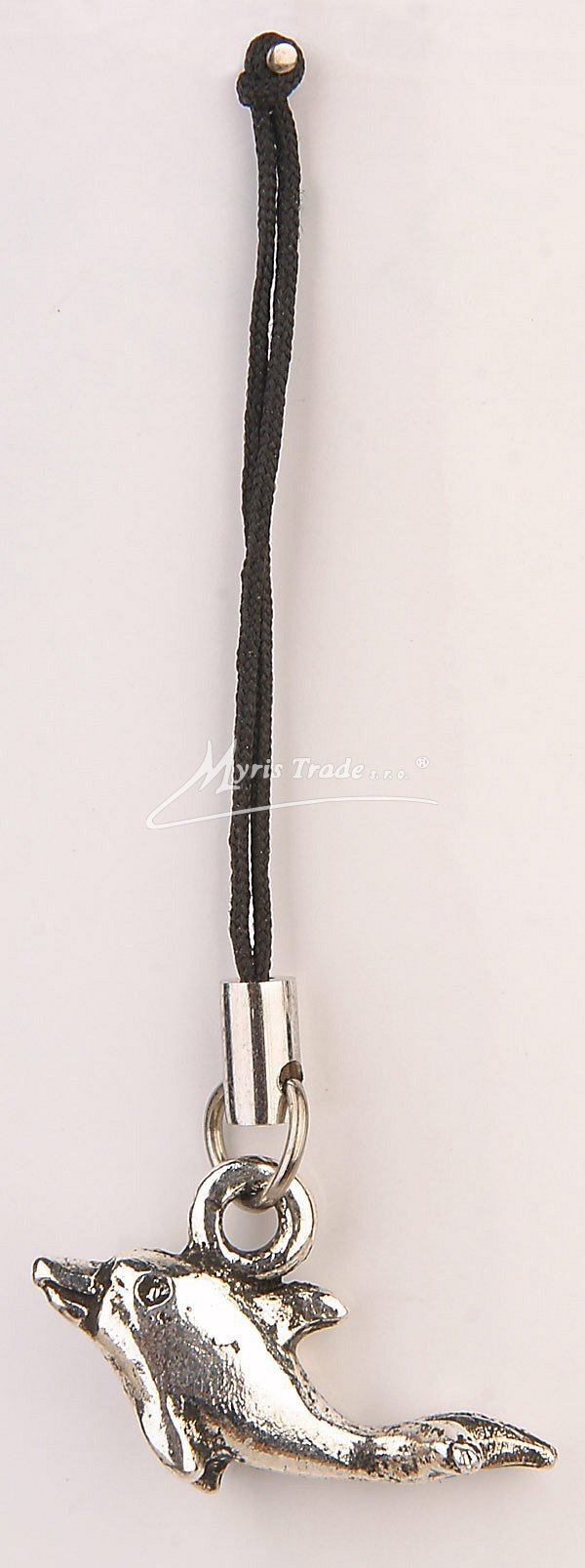 Přívěsek k mobilu ze stříbrného kovu s figurkou delfína. Přívěsky jsou baleny jednotlivě v idelitovém sáčku s možností zavěšení.
