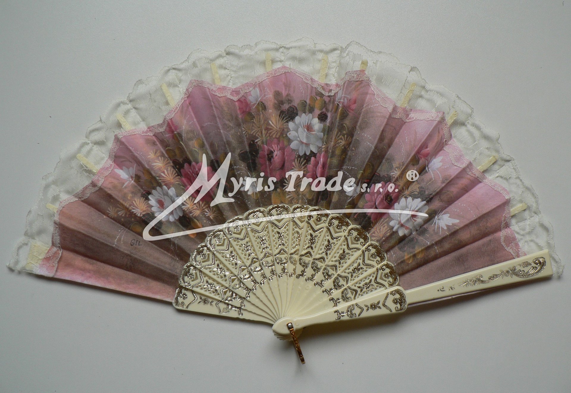 plastový vějíř s květinovým motivem a krajkou v barvě slonové kosti lze použít nejen jako krásnou dekoraci, ale je i plně funkční