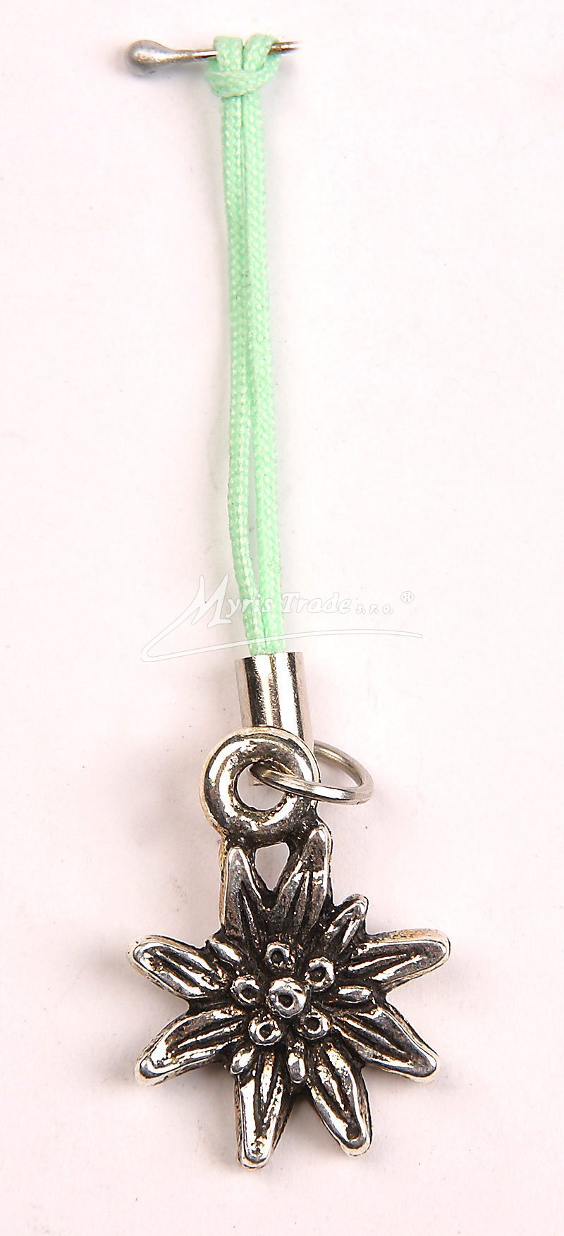 Přívěsek k mobilu ze stříbrného kovu ve tvaru kopretiny. Přívěsky jsou baleny jednotlivě v idelitovém sáčku s možností zavěšení.