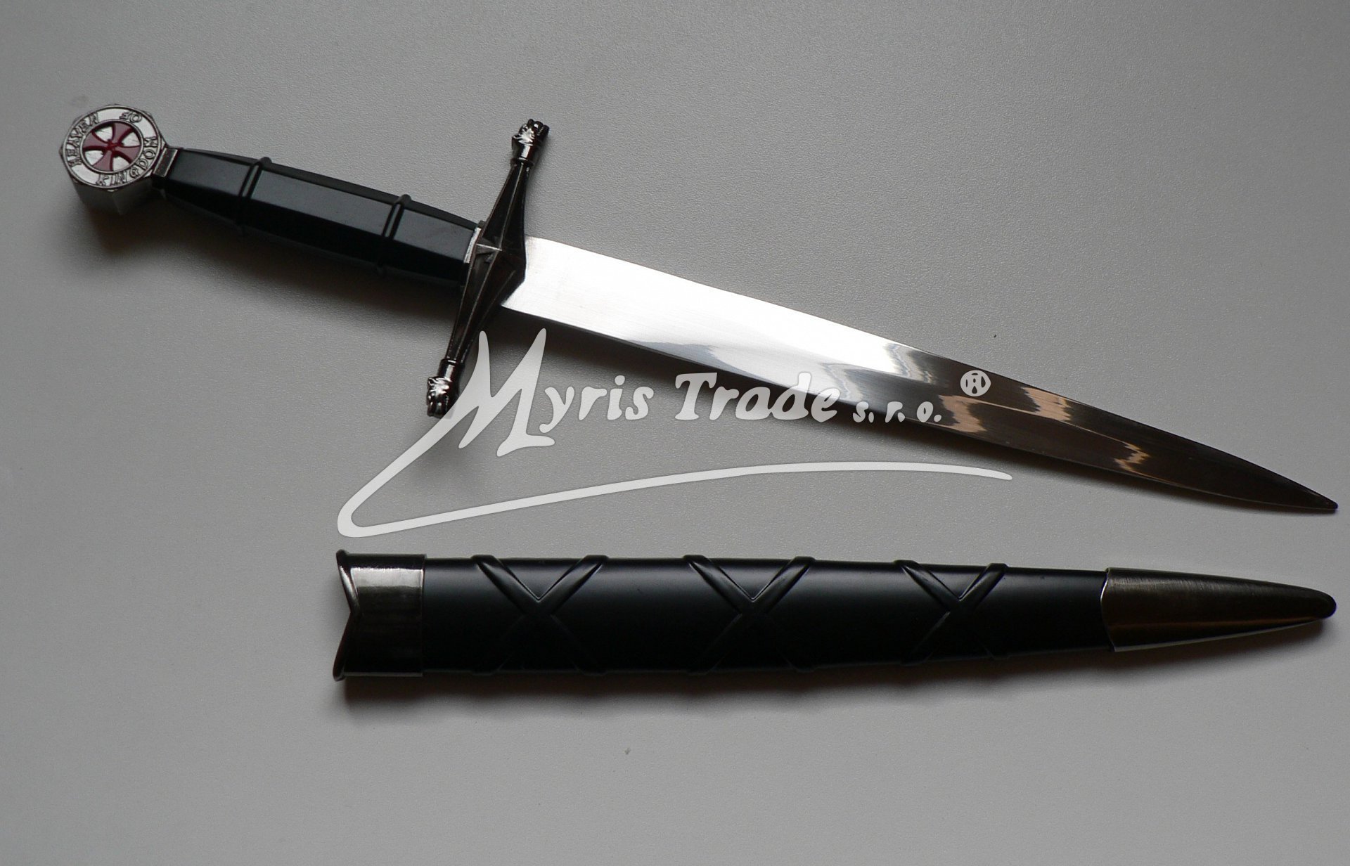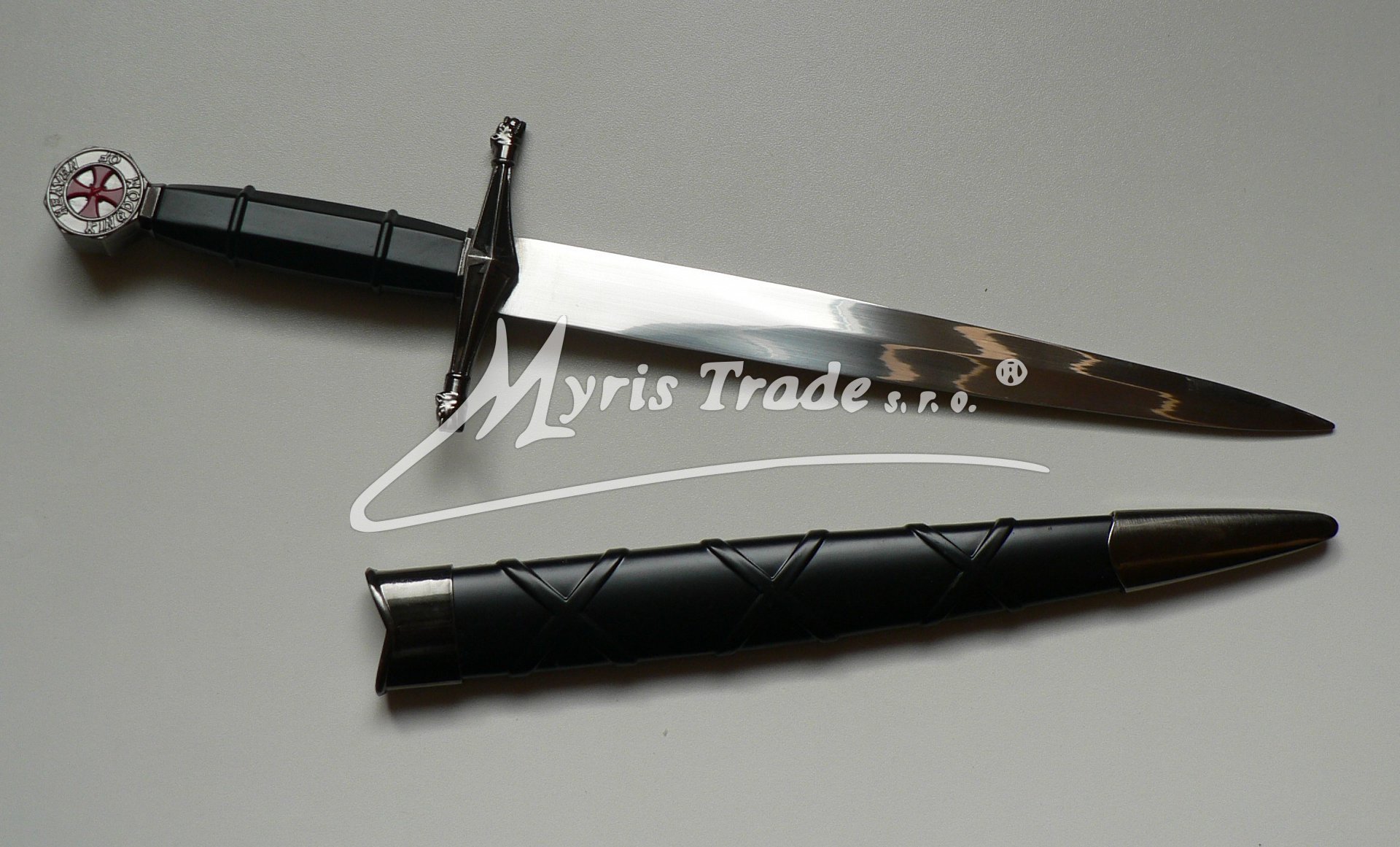 nefunkční replika dýky Templářů s pochvou v černém provední Balená v ozdobné krabici