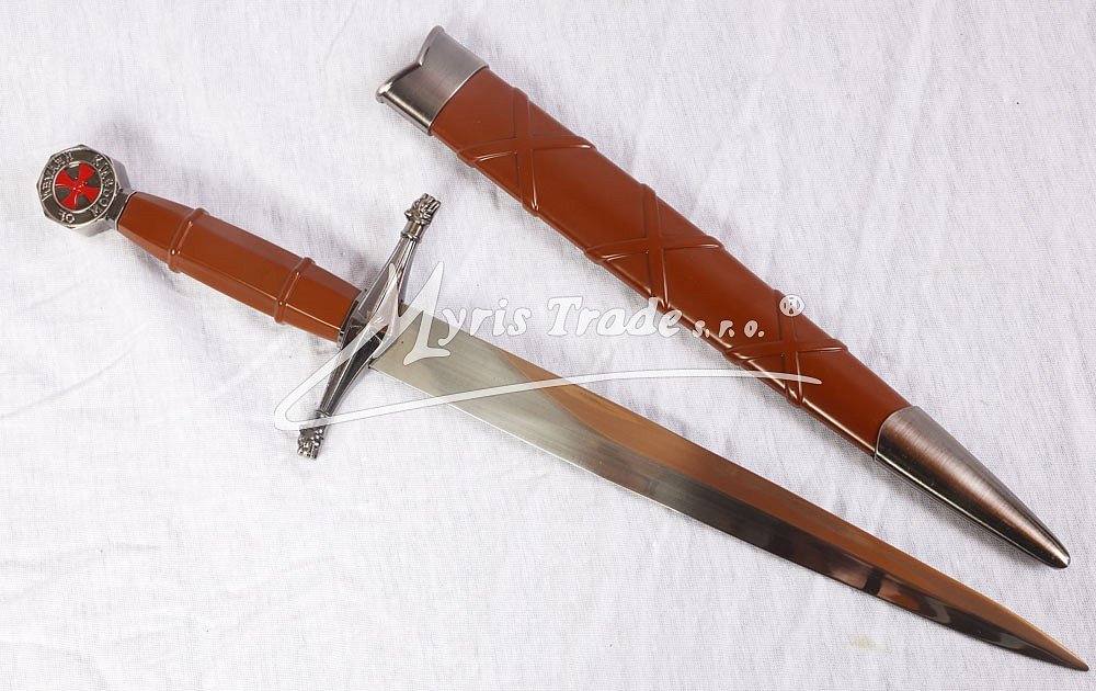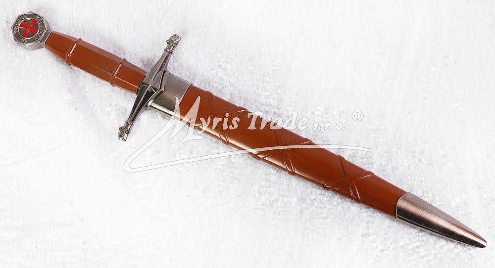 nefunkční replika dýky Templářů s pochvou v hnědém provedení, baneno v ozdobné krabici