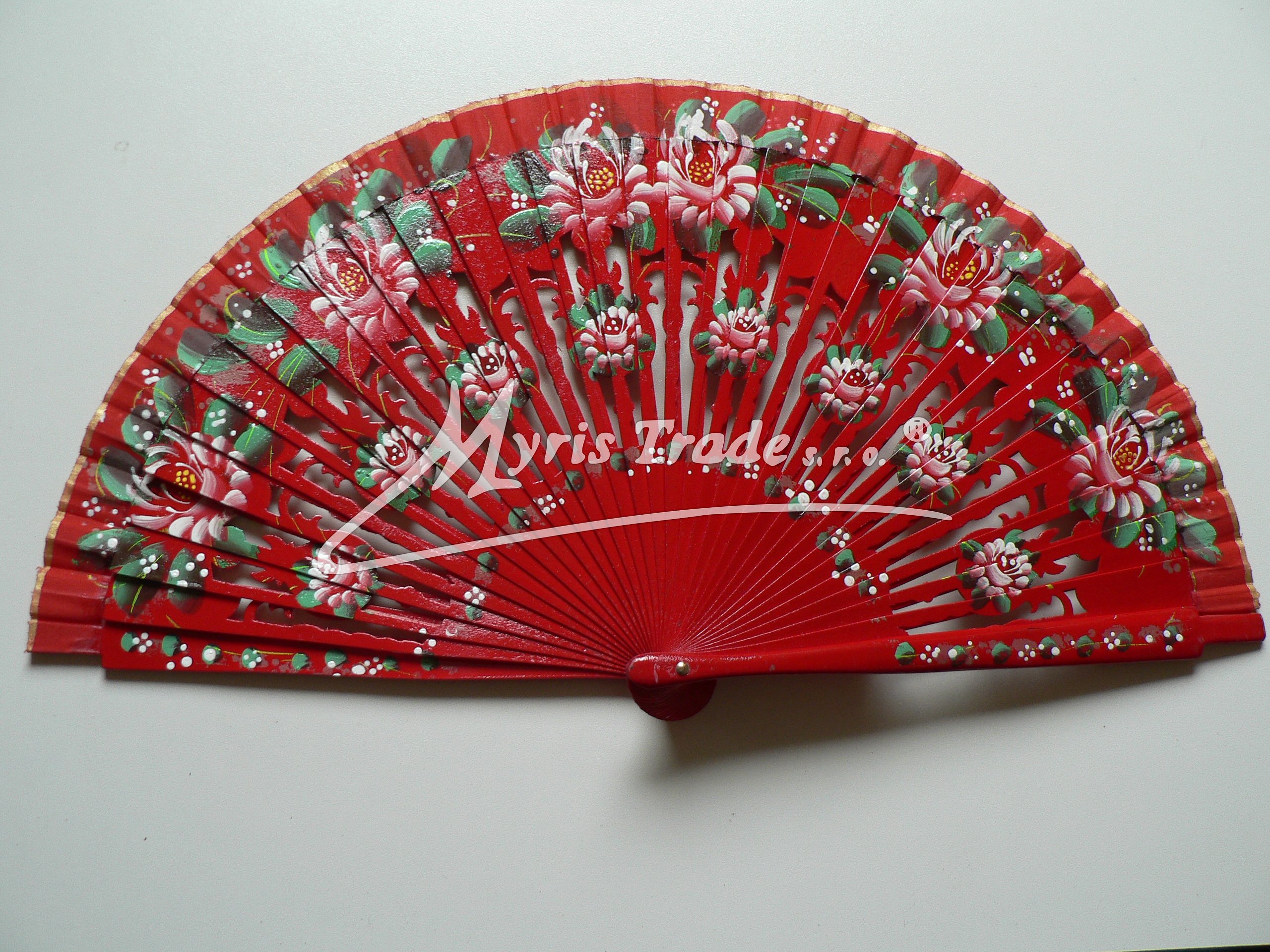 dřevěný vějíř, lakovaný, bohatě vyřezávaný a ručně malovaný po obou stranách, může sloužit nejen jako krásná dekorace, ale i jako luxusní doplněk pro plesovou sezónu