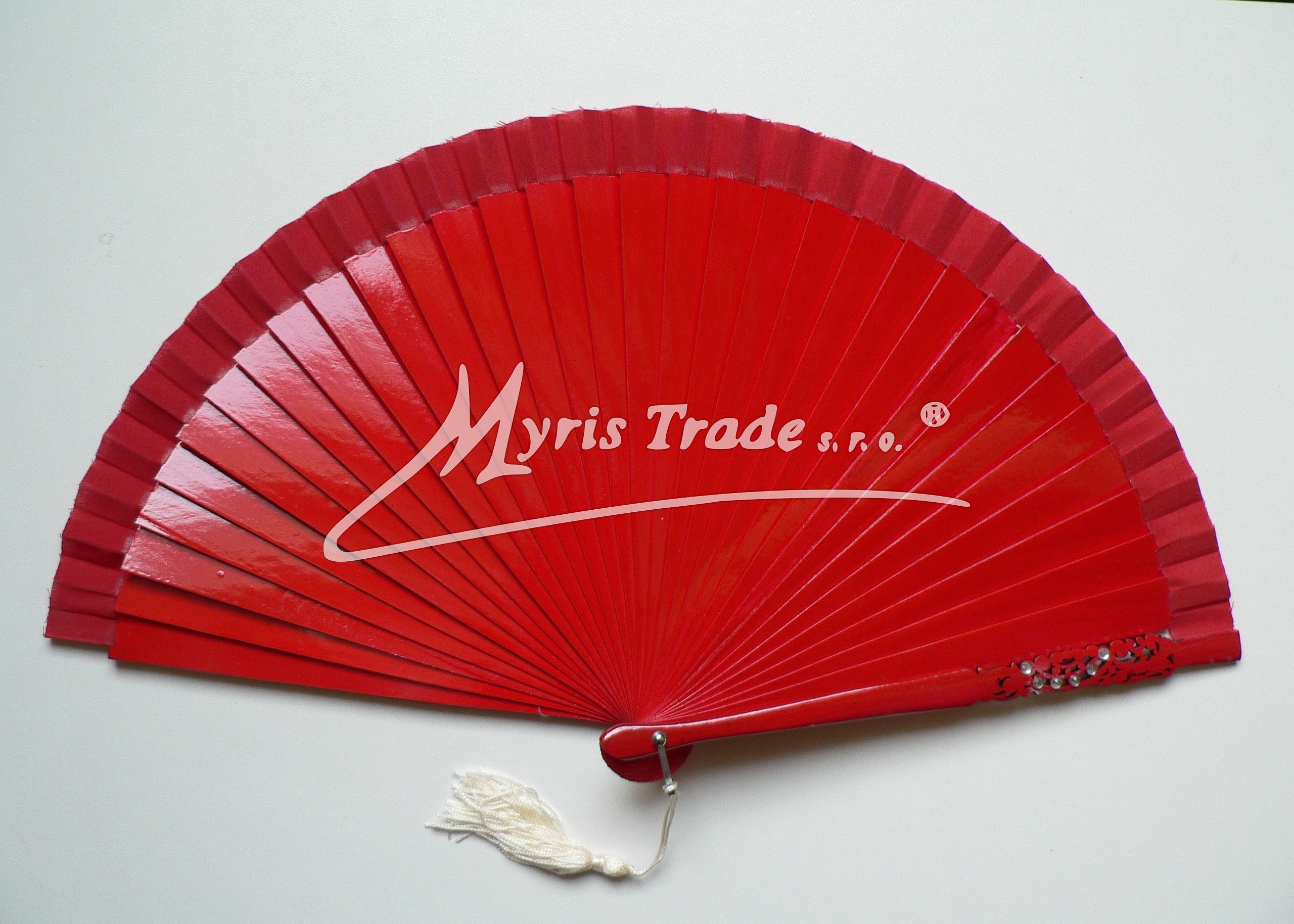 vějíř dřevěný vykládaný kamínky - červený (30C)