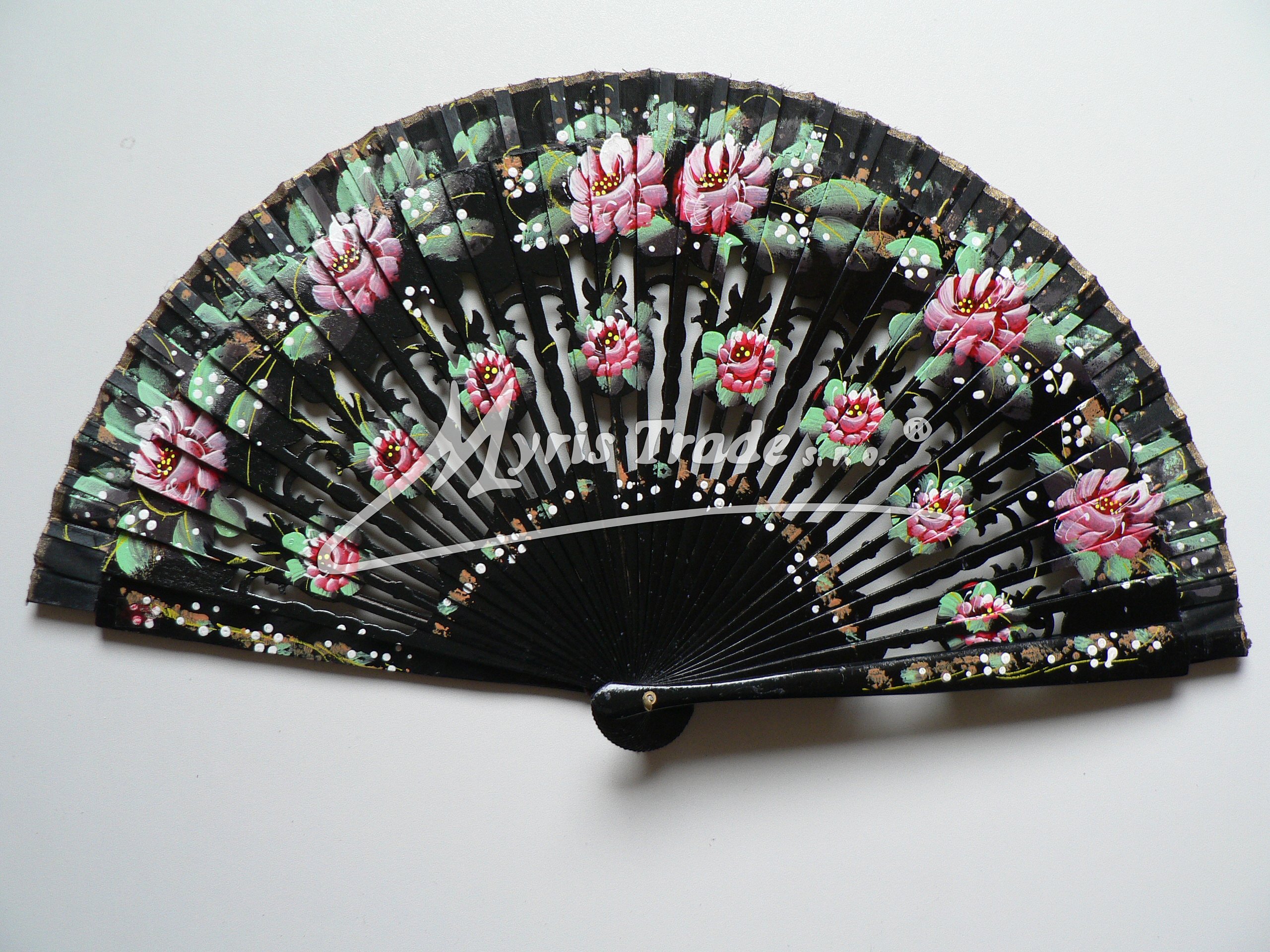 dřevěný vějíř, lakovaný, bohatě vyřezávaný a ručně malovaný po obou stranách, může sloužit nejen jako krásná dekorace, ale i jako luxusní doplněk pro plesovou sezónu