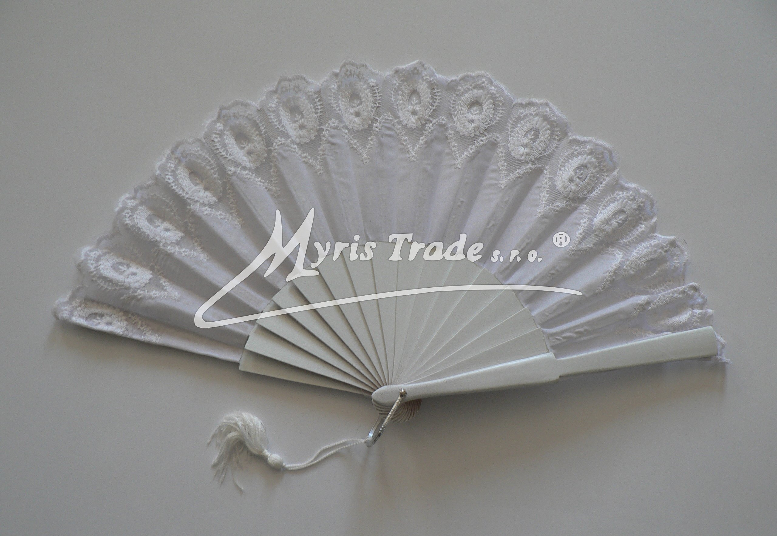 svatební vějíř s bílou ručně vyrobenou krajkou