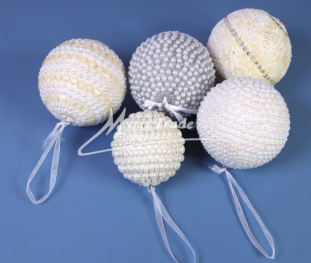 koule větší - perličky-bílá, 9 cm (GR-10P/B)