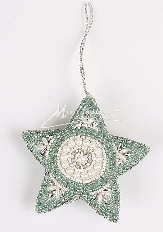 Hvězda pošitá perličkami a korálky. Hvězda může sloužit jako vánoční ozdoba, nebo i jako dekorace mimo vánoční sezonu