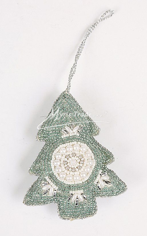 Stromeček pošitý perličkami a korálky. Stromeček může sloužit jako vánoční ozdoba, nebo i jako dekorace mimo vánoční sezonu