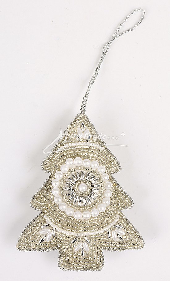Stromeček pošitý perličkami a korálky. Stromeček může sloužit jako vánoční ozdoba, nebo i jako dekorace mimo vánoční sezonu