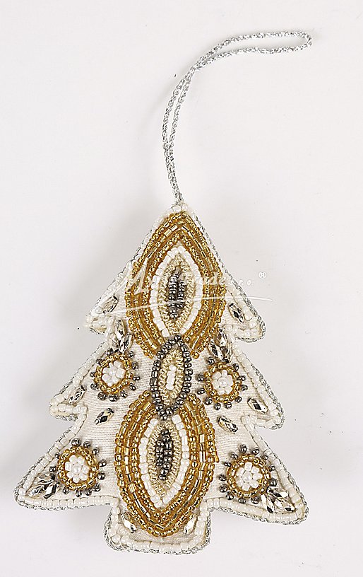 Stromeček pošitý perličkami a korálky. Stromeček může sloužit jako vánoční ozdoba, nebo i jako dekorace mimo vánoční sezonu