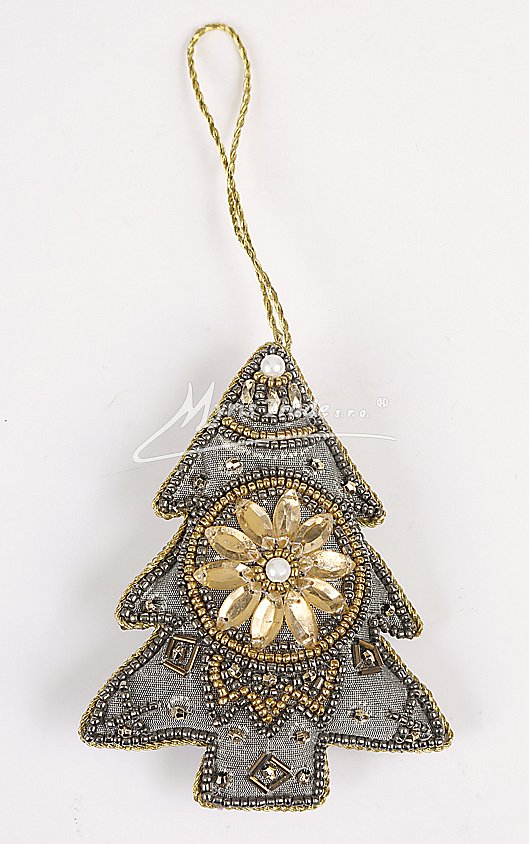 Stromeček pošitý perličkami a korálky. Stromeček může sloužit jako vánoční ozdoba, nebo i jako dekorace mimo vánoční sezonu
