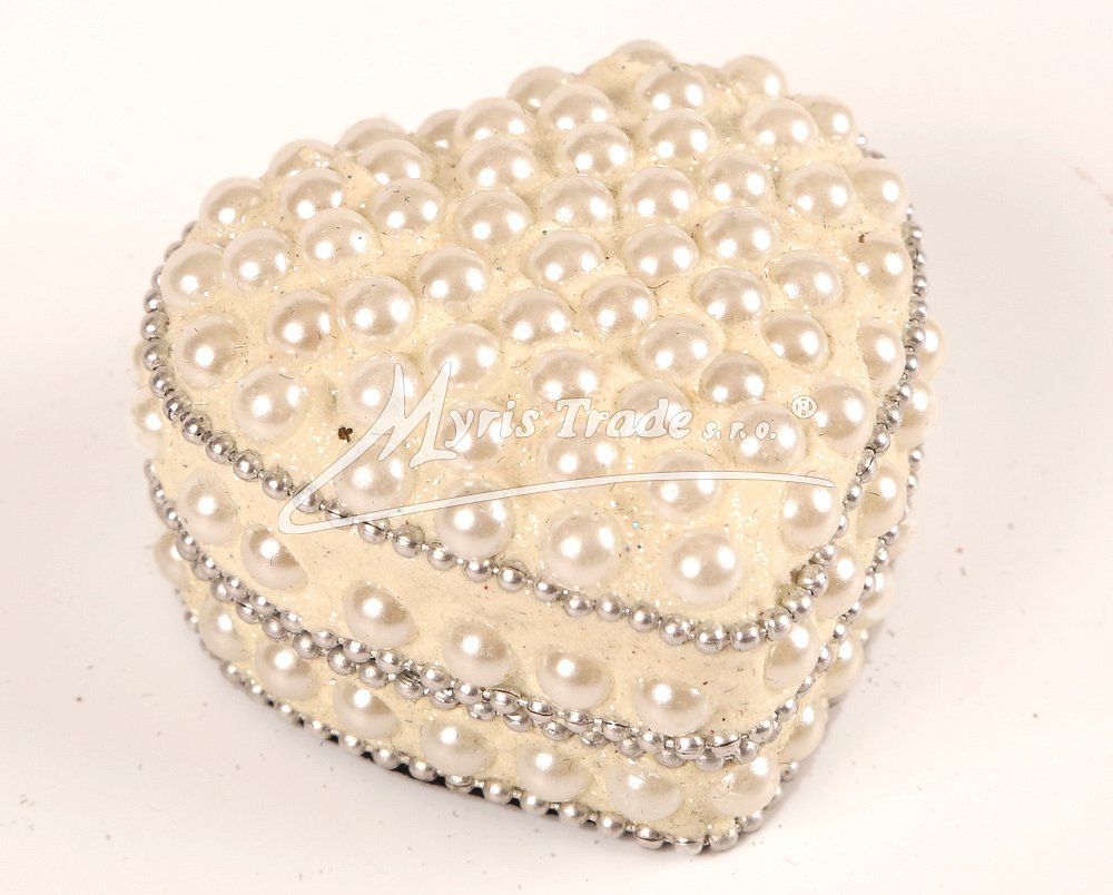 malá ozdobná šperkovnice - ve tvaru srdce, zdobená perličkami v bílé barvě