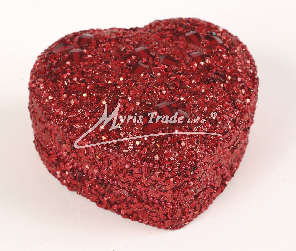 ozdobná šperkovnice - ve tvaru srdce, zdobená korálky, kamínky a flitry v červené barvě