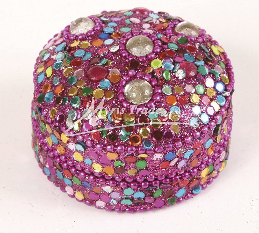 ozdobná kulatá šperkovnice - zdobená barevnými kamínky