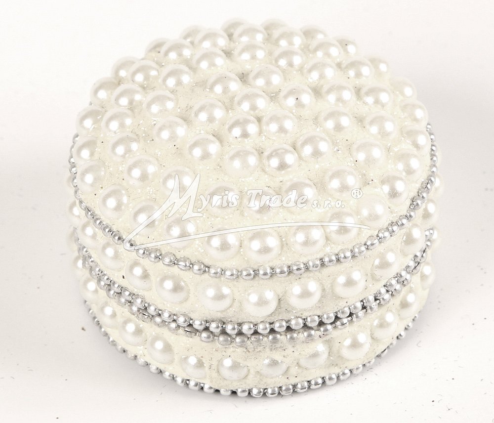 ozdobná kulatá šperkovnice - zdobená perličkami