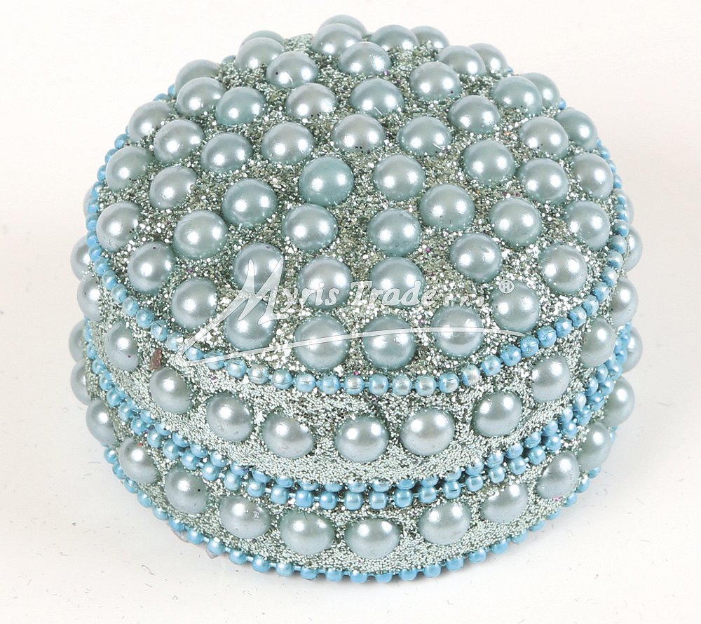 ozdobná kulatá šperkovnice - zdobená perličkami