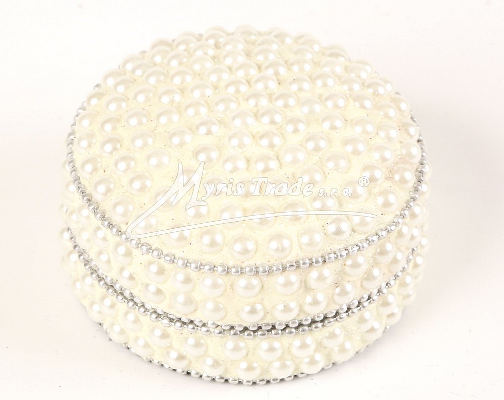 ozdobná kulatá šperkovnice - zdobená perličkami