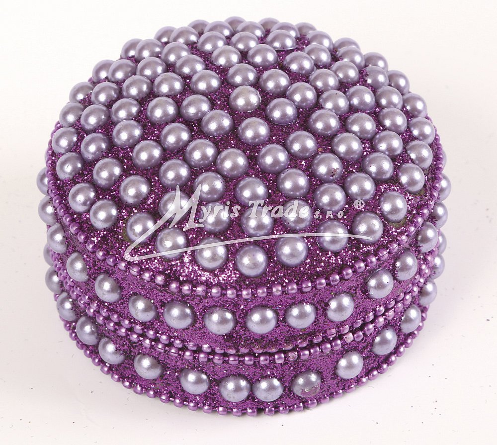 ozdobná kulatá šperkovnice - zdobená perličkami