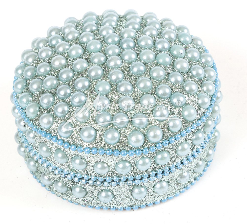 ozdobná kulatá šperkovnice - zdobená perličkami