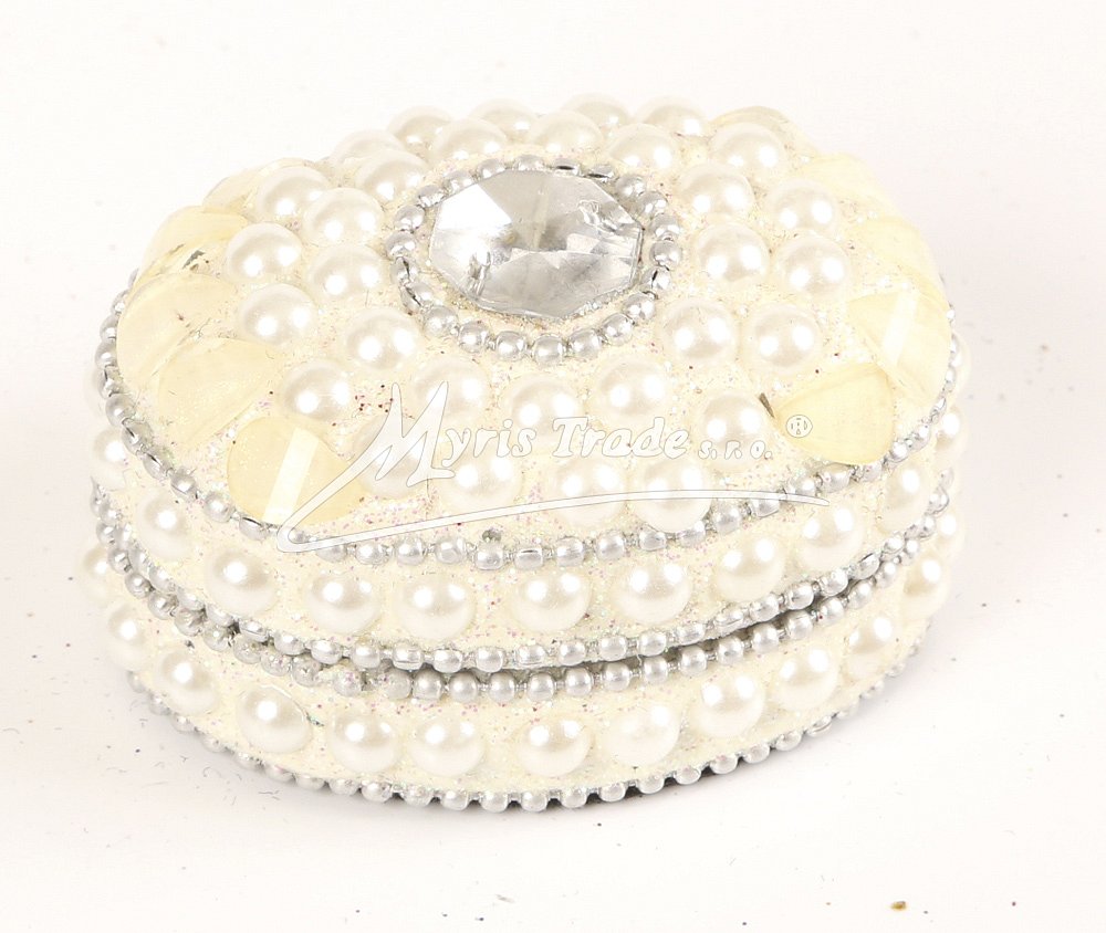 ozdobná oválná šperkovnice - zdobená perličkami a kamínky