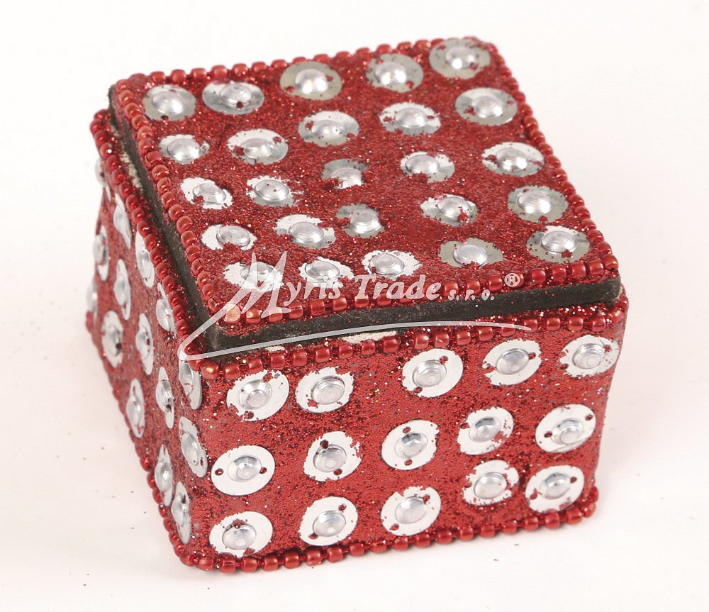 ozdobná čtvercová šperkovnice - zdobená korálky, kamínky a kovovými kuličkami