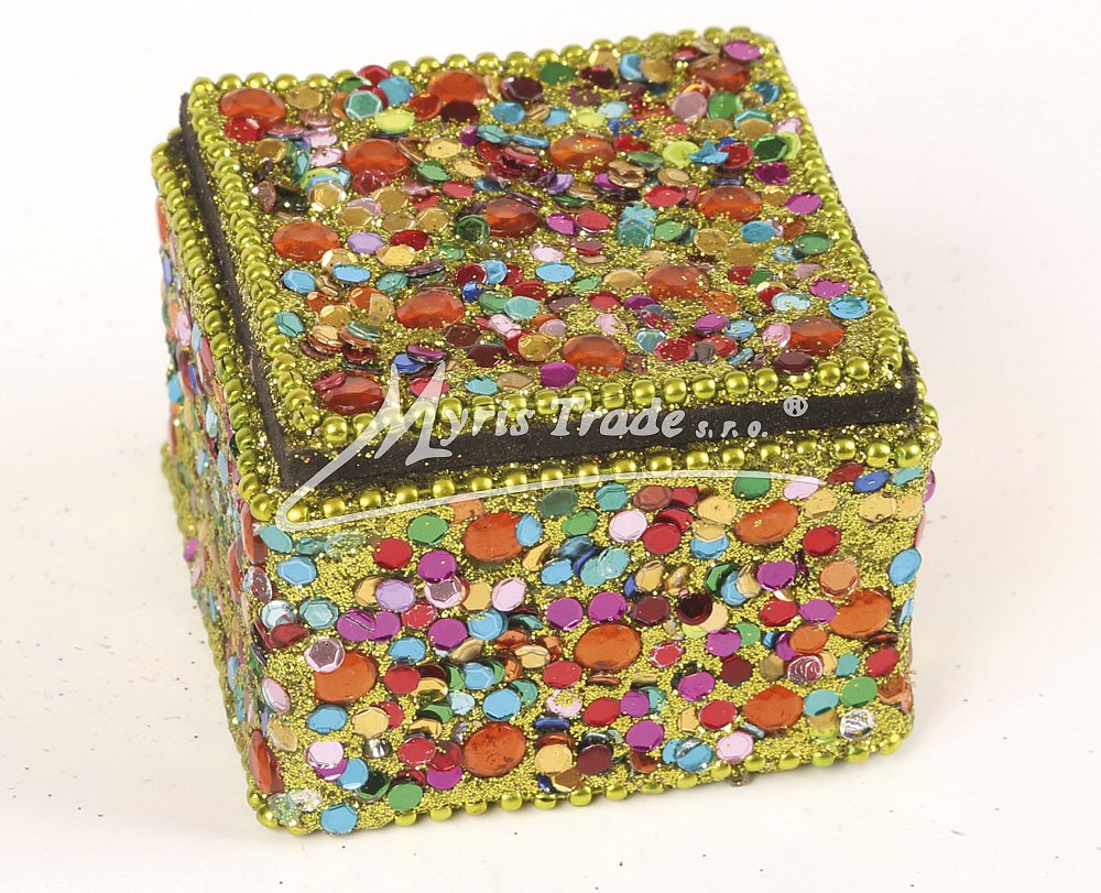 ozdobná čtvercová šperkovnice - zdobená korálky a kamínky