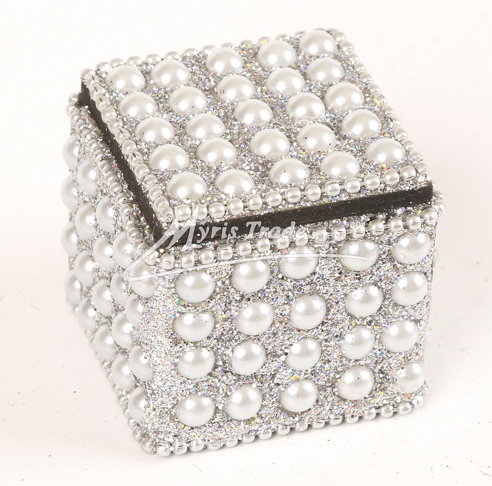 ozdobná šperkovnička, kostka - zdobená perličkami