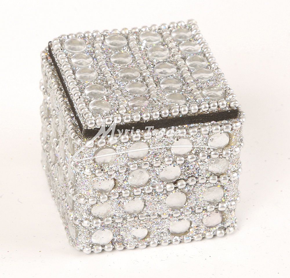 mini krabička, stříbrná s kamínky - 4 x 4 cm (GR-20S/K)