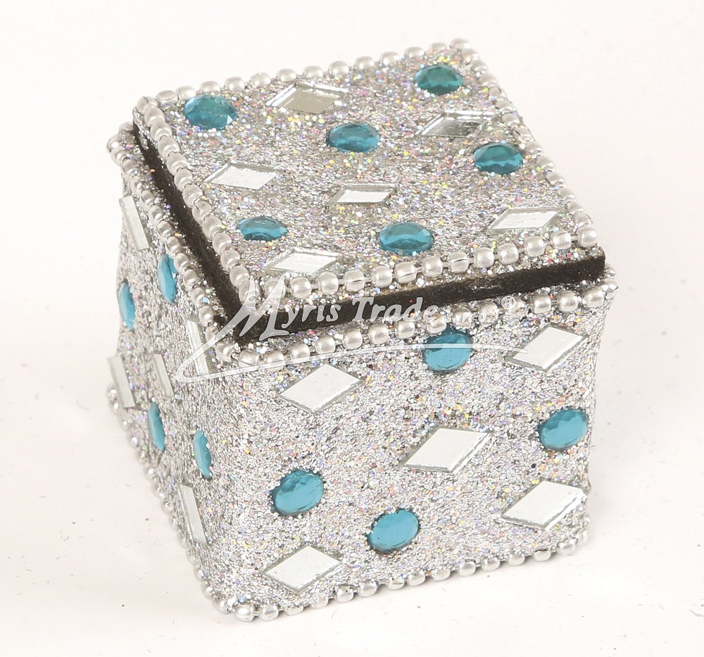 ozdobná  šperkovnička, kostka - zdobená korálky, kamínky a zrcátky
